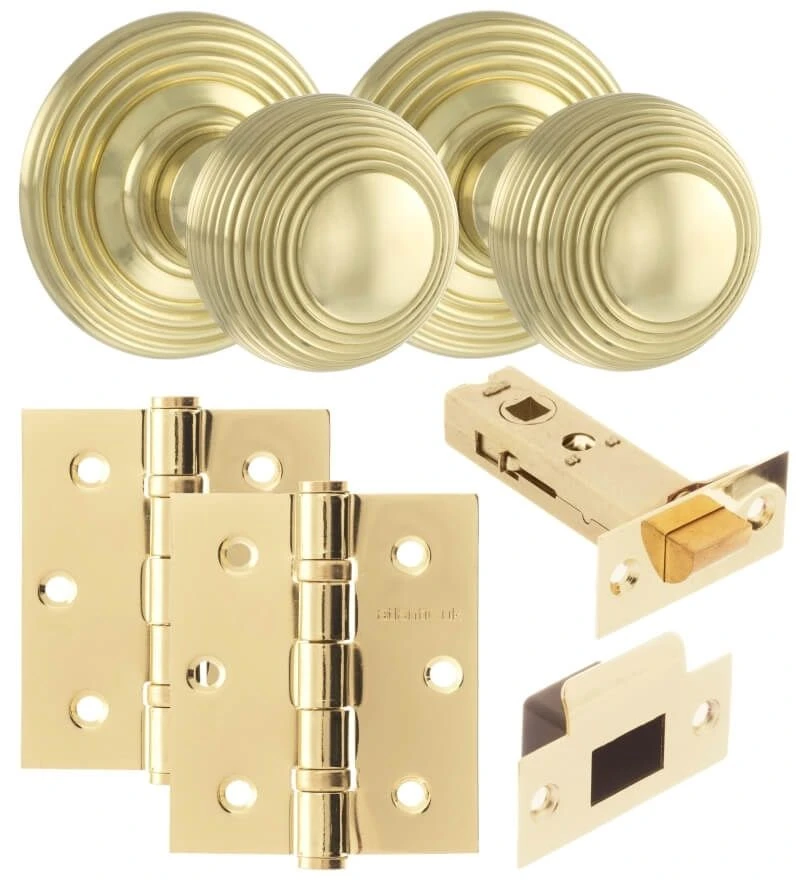 If you’re looking to replace your existing door ironmongery, or even need new door furniture to hang some brand new doors with, this pack could be the most cost effective and stylish choice for you. The Polished Brass finish gives a regal gold touch to your doors, and with all the elements of the pack matching, you’ll have a uniform look across all your doors. With 2 x door knobs, 2 x butt hinges, a latch and matching striking plates, you’ll have everything you need for your doors. All required fixings are included.