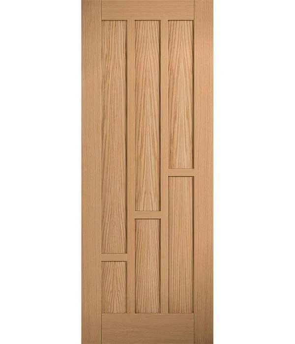 Our Coventry Unfinished Oak 6 Panel FD30 Internal Fire Door is the ultimate combination of style and fire safety. With a unique design, this oak fire door is sure to impress any guests entering your property. The design consists of 6 vertical panels which are aligned diagonally to create a tasteful contemporary look. The door is finished with a high quality oak veneer, which is FSC certified to confirm that it has been taken from sustainable sources, giving you peace of mind! The FD30 rating of this door has been awarded to certify that the door is guaranteed to withstand flames for a minimum of 30 minutes. This door is supplied unfinished, so it will require a final coat of a quality protective product, such as our Treatex Hardwax Oils. With a wide range of sizes to choose from, we’re confident that most people will be able to find the size they require. However, if your measurements are slightly more obscure, we can have your doors built to your specifications with our bespoke service.