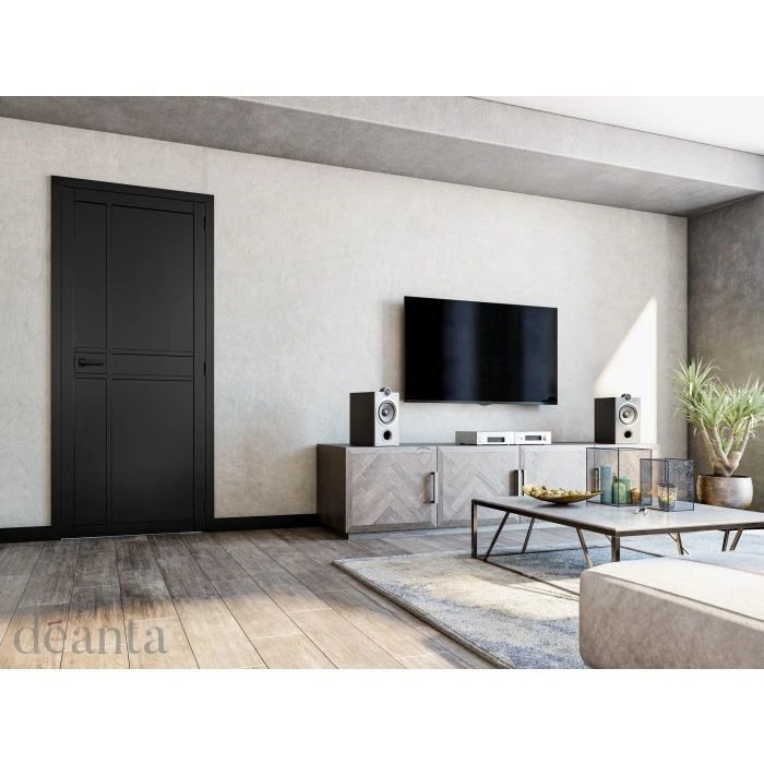 Are you looking to achieve a contemporary city vibe within your home or office? The new Deanta Urban collection might be the range of doors for you! If you’re looking for industrial style internal doors, which excel in subtle details and a cool simplicity, then the Dalston solid black door could be just what you need. Featuring six panels of varying sizes, divided up by minimalistic square edged railing, this modern panel door is the perfect choice for both modern and traditionally decorated homes. Two tall, narrow inset panels aligned to the left of the door and separated by a much smaller rectangle of the same width are mirrored on the right hand side and tripled in width. The tiny rectangle is a raised lock block which is positioned to the left of the door, making it ideal for an Urban collection door handle. The overall design creates a subtle yet intricate modern variation on a traditional panel door.