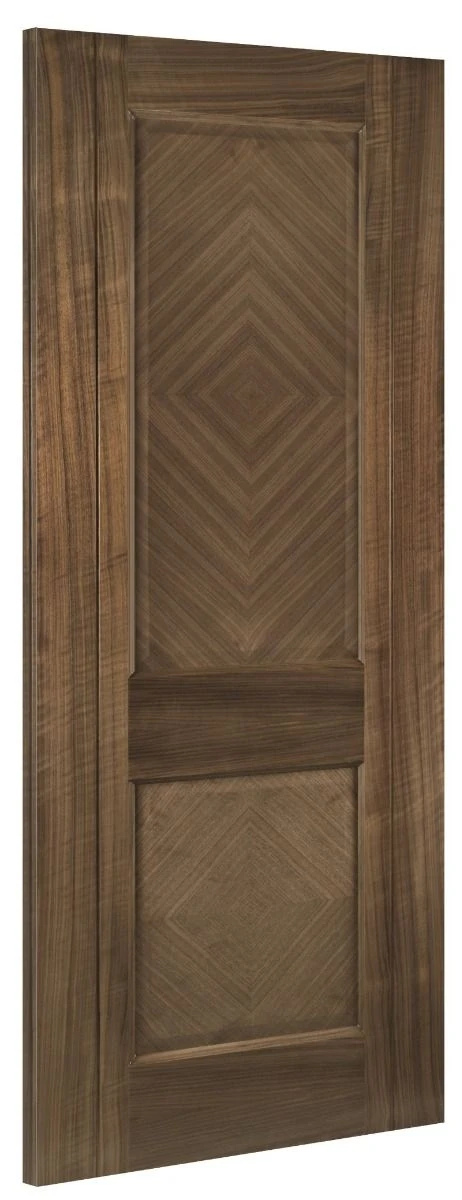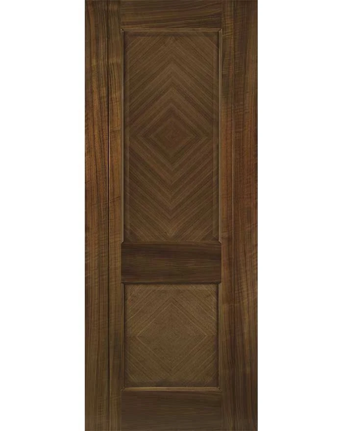 Experience the art of traditional woodworking skills by choosing the Kensington internal walnut door. The door’s symmetrical diamond shape design, carved into both panels, imparts an extraordinary aesthetic appeal. The mixture of colour tones within the wood adds warmth and sophistication, uplifting the ambience of your rooms. A wide bar thoughtfully separates the two panels, enhancing the door’s captivating allure.