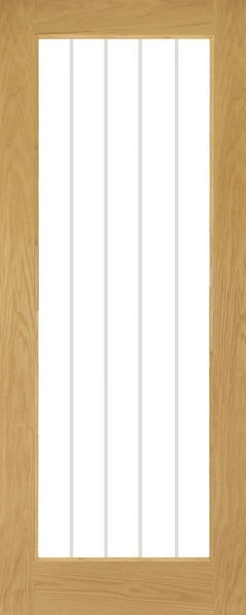 This glazed door which is part of our very popular Mexicana Ely range is constructed out of superior quality American white oak veneer; perfect for complementing many different interiors. This door has a large inlaid glass panel – ideal for letting in light and warmth. The clear glass is accessorized with vertical lines, which add a beautiful and decorative finishing touch to this internal door.