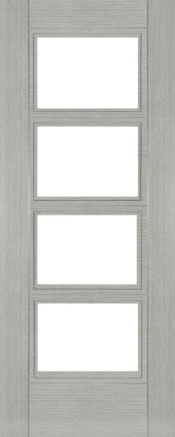The Montreal Prefinished Glazed Light Grey Ash Door is part of a very popular range of grey modern doors and works particularly well in contemporary interiors, the glass panels allow light to flow from one room to another whilst not compromising on the overall design. The simple design is on trend and compliments both dark and light settings. This light grey ash, flush internal door is in high demand and suits most modern homes.
