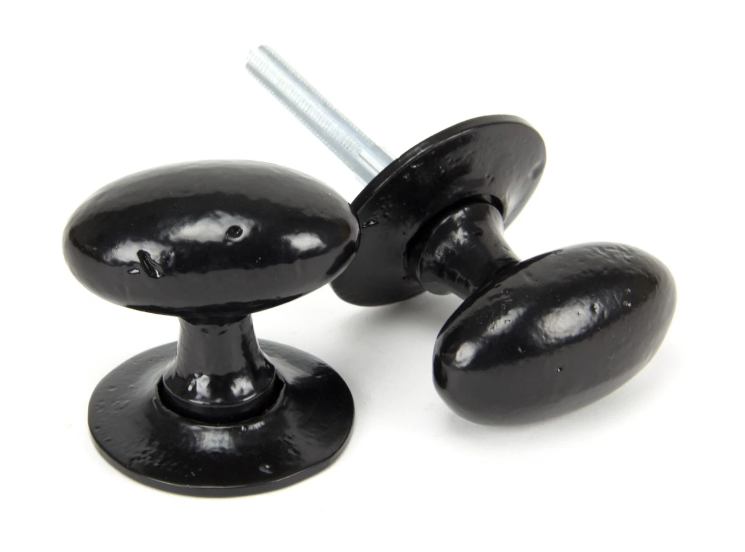 Our oval mortice / rim knob set is the perfect finishing piece for any traditionally styled internal door. Its uneven surface finish and black powder coat provide an authentic vintage appearance and one which sits extremely well against a wood grain back drop.