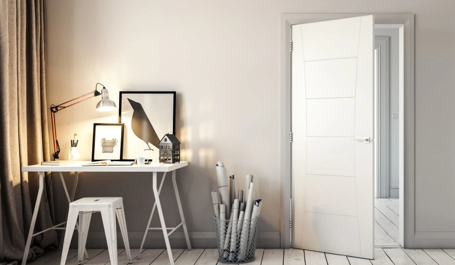 This six panel door with a stylish curved design is perfect for any modern home and adds a touch of style to a popular look. Gone are the days of plain white door designs and now with our extensive range, you are spoilt for choice. The sleek curves on the two edges gives this door a unique feel and paired with a contemporary door lever handle, it is sure to be a focal point in any room it is fitted in.