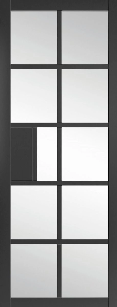 Choose the Plaza black prefinished clear glazed internal door with individual glass panes and experience the perfect combination of style and practicality. Enhance your space with its sleek design, improved natural lighting, insulation, and durability.