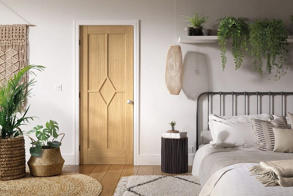 Our Reims 5 Panel Diamond Prefinished Oak Internal Door is a unique variation of a 5 panel door. Featuring a central diamond shaped panel, which is formed by the decorative beading that separates the panels. This door is prefinished, meaning that you don’t have the trouble of finishing the door before it is ready to hang. The design of this internal oak door is a perfect combination of traditional and modern features, resulting in a door that can be suited to any interior. With multiple sizes available, we’re confident that most people will be able to find their required size. This door is constructed with the highest quality oak veneer, which comes with an FSC certificate, to ensure that it has been taken from sustainable sources. The door also comes with a fantastic 10 year warranty, so you can be assured that you will be protected in the unlikely event that a manufacturing defect occurs.