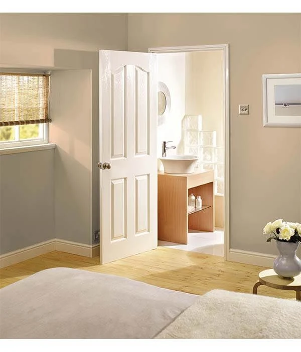 If you are looking for a 4 panel door but want to move away from a standard Victorian style, why not look at the textured mayfair white moulded internal door. The Mayfair has moulded raised panels, 2 appealing curved top panels and 2 square edged bottom panels that give a modern edge to a traditional door style. Suited to a mostly traditional decor, this textured moulded door would not look out of place in the grandeur of a stately home. If detail defines your style, the textured finish gives these cheap white doors the look and feel of a door that is both tactile and durable without the expense of carved wooden mouldings. The raised profile offers depth and sophistication to this white internal door. With the right door furniture this low cost door can look charmingly stylish.