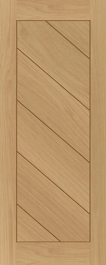 The Torino Prefinished Oak Fire Door is a sought-after design constructed with real oak veneer. This modern flush door has a sleek unique style that would suit a modern contemporary home. The diagonal inlay design gives a sharp modern feel, coupled with the real oak veneer that gives it an elegant edge.