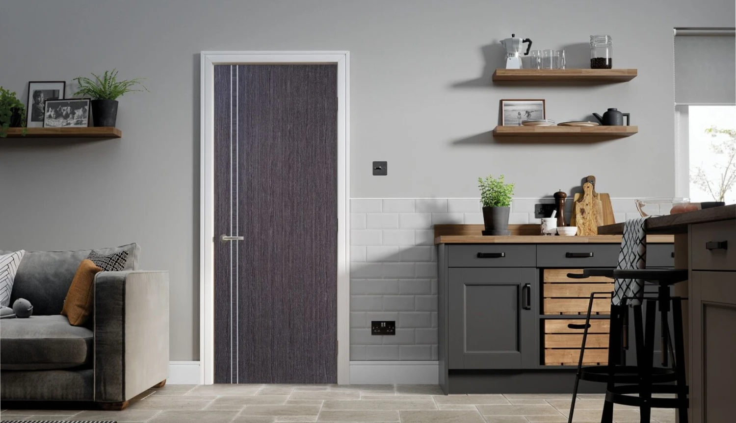 The Zanzibar Prefinished Ash Grey FD30 Internal Fire Door is a stunning, contemporary grey fire door which is perfect for anyone who does not want to compromise on design when it comes to safety. The two aluminium inlays run parallel from the top to bottom which perfectly breaks up the beautifully finished vertical grain, complimenting any modern decor.